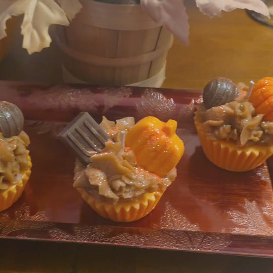 Topped with a mini pumpkin, a piece of chocolate, and swirled āicingā covered in sparkling orange glitter, this candle is a showstopper on any shelf or table. Whether you're decorating for fall, gifting someone sweet, or treating yourself, this is the ultimate seasonal indulgence.
