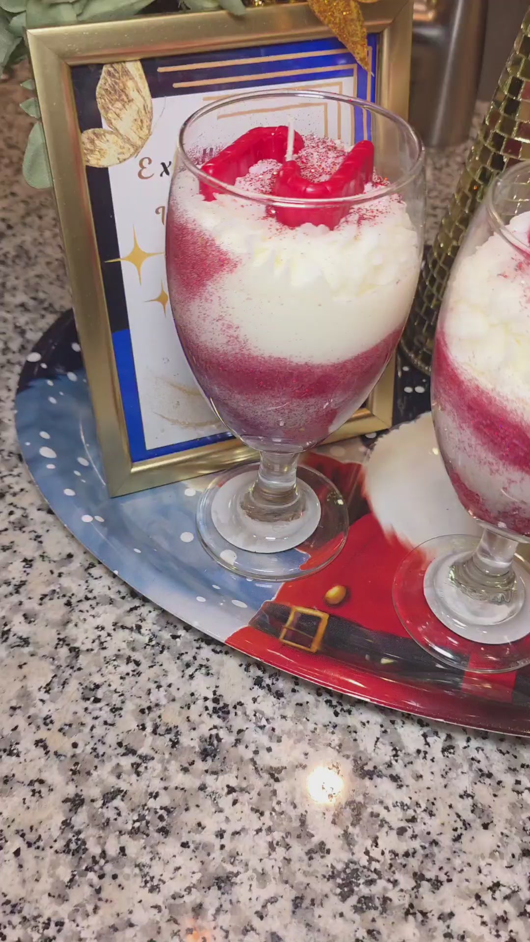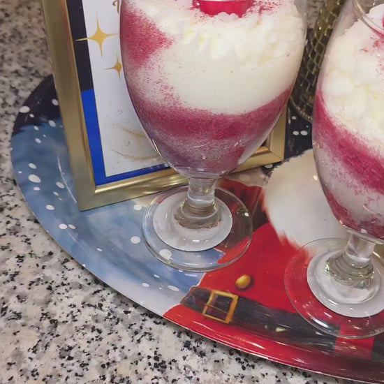 Each piece is hand-decorated with shimmering red glitter swirls and topped with whipped frosting and two classic candy canes, creating a dessert-inspired look that’s almost too cute to burn. Once lit, it fills your space with the refreshing, nostalgic aroma of candy cane and cool peppermint, perfectly balancing sweet and minty notes.
