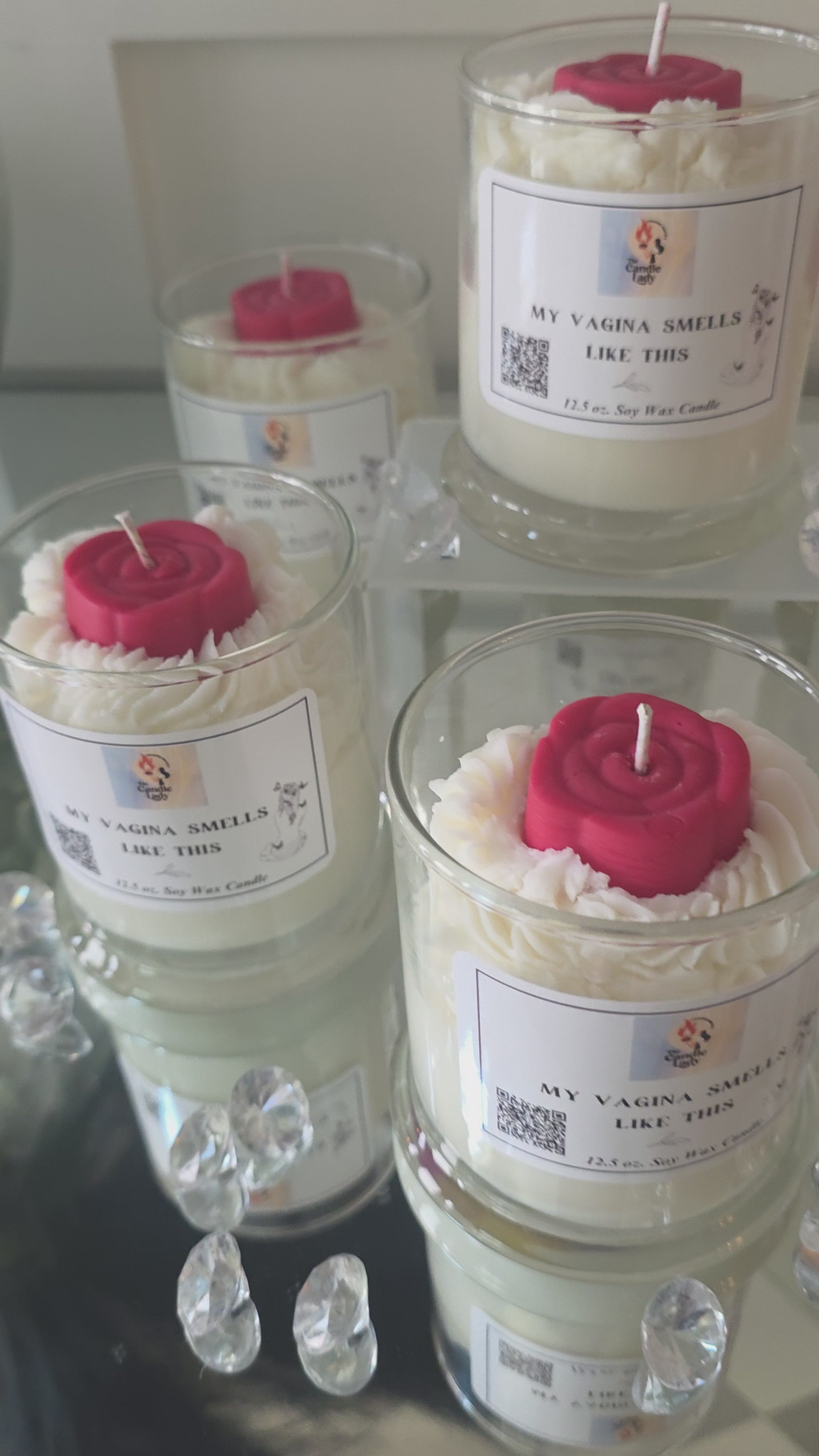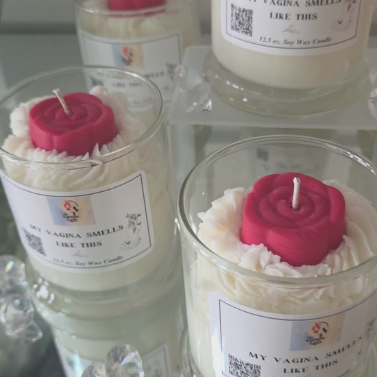 Confident. Unapologetic. Unforgettable. The "My Vagina Smells Like This" candle is a daring blend of seduction and self-expression. Hand-poured with all-natural coconut soy wax, this 10.5 oz candle features a beautifully embedded red rose at its center—symbolizing bold femininity and raw allure.